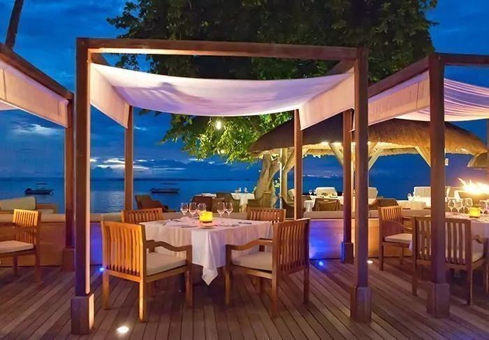 Imagine sitting at a beautifully laid table with your feet in the sand. Shortly, the waiter will bring you the evening menu. In front of you is a cool drink – the condensation forming small beads on the glass. The waves are lapping the beach, and you are looking out at a stunning sunset.