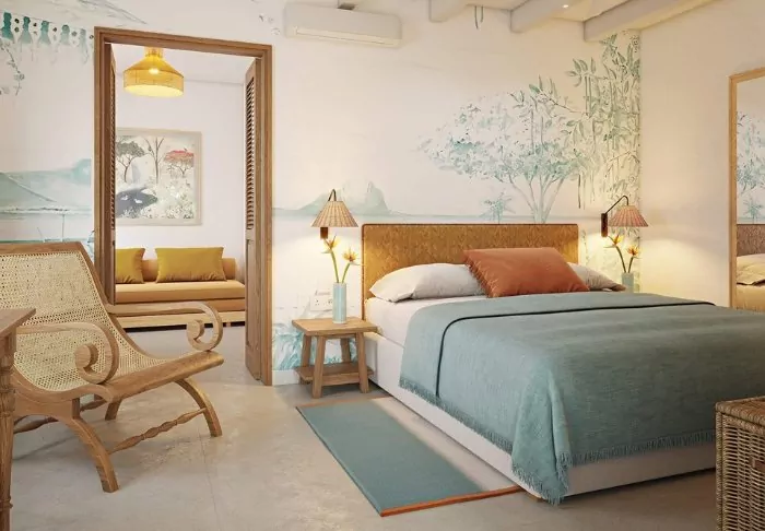 There are three room categories, and thanks to the hotel’s ingenious layout you are never far from the water, whether it’s a pool or the sea.