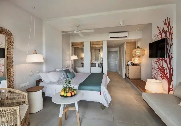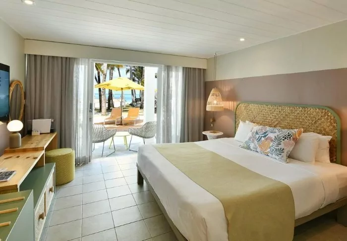 The ‘Prestige’ rooms in the southern ‘wing’ are colourfully decorated with lots of personality, while the slightly larger ‘Deluxe’ rooms in the northern wing are a little more subdued and slightly more luxurious. The all-inclusive concept includes a minibar in the room, which is replenished daily with beer, soft drinks and wine (if desired) in addition to all the day’s meals. Also on the food front, C Mauritius stands out (positively, if you ask us) in that, for example, at lunchtime you can pick up your food and a cold beer in the hotel’s self-service restaurant and take it to the beach or enjoy it on your balcony without having to change and wait for a waiter – unless of course you want to do that, because then it’s obviously an option!
