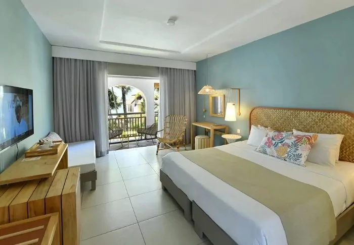 There are 115 rooms located in two-storey buildings in the tropical garden. All of them have a balcony/terrace, free Wi-Fi, air conditioning, a minibar, a safe, and tea and coffee making facilities. 44 of the rooms are special family rooms with space for all the family, and at one end of the hotel area, you will also find a well-equipped “Kids’ Club”.