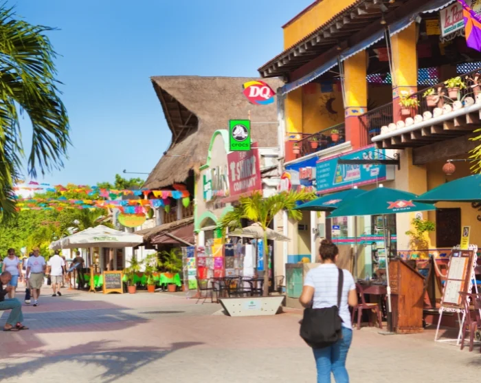 The centre of Playa del Carmen is Plaza Mayor, situated by the beach and right next to the ferry to Cozumel Island. From Plaza Mayor, the lively main street Avenida 5 stretches out, filled with a plethora of shops, restaurants, and bars.