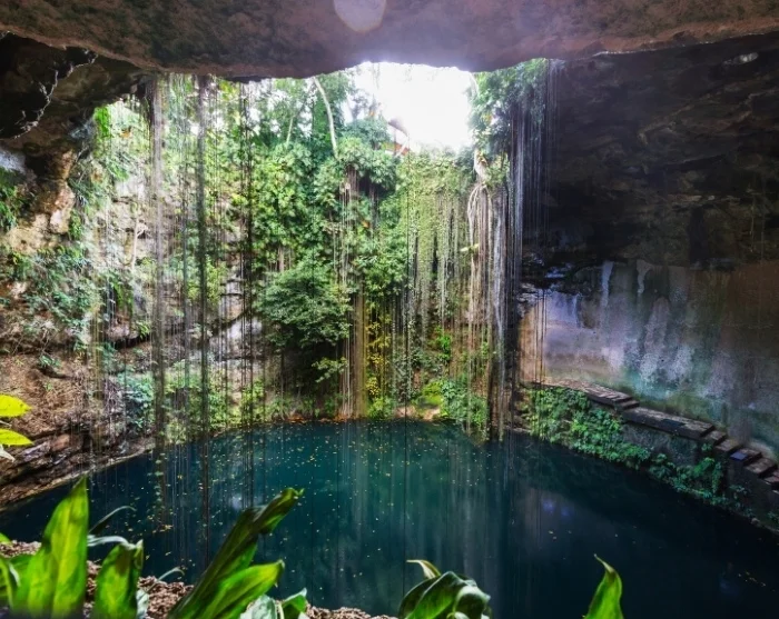 Experience local life as you stroll along the cobbled streets and make your way down the picturesque Calzada de los Frailes, where brightly coloured houses line the avenue. You might like to visit the historic San Bernardino de Siena Monastery or discover the fascinating Zaci cenote—a natural underground pool right in the heart of the city, perfect for a cooling midday swim. In fact, there are more than 6,000 cenotes scattered across the Yucatán Peninsula. Read more about cenotes on our blog here.