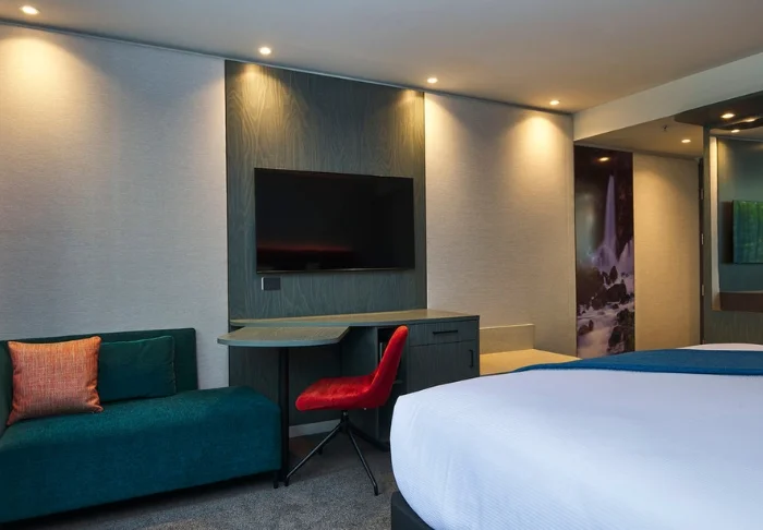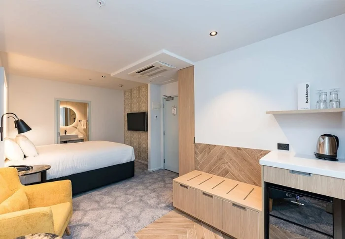 The hotel has a modern, stylish design, with a focus on both comfort and sustainability. There are 86 rooms in total, each with a private bathroom, minibar, safety box, smart TV, desk, kettle, and tea and coffee making facilities. Complimentary Wi-Fi is available throughout your stay as standard.