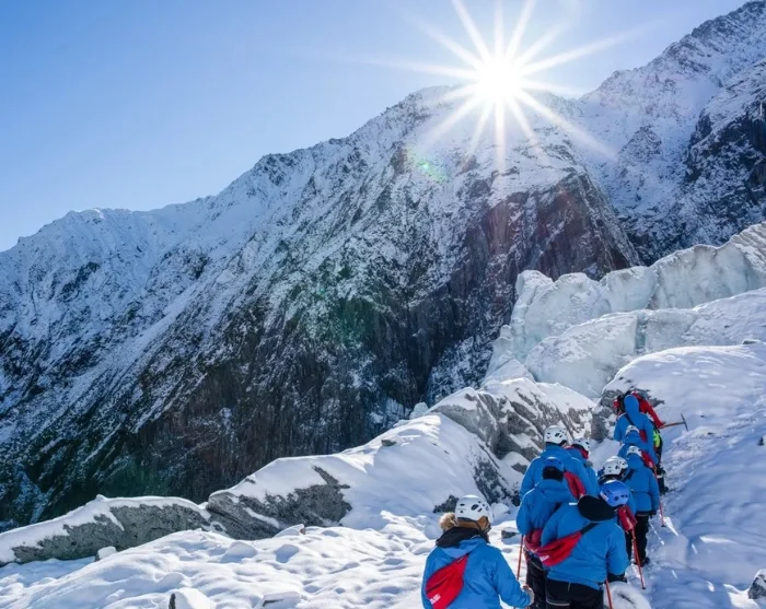 Price includes: Helicopter flights, professional glacier guide, crampons (for ice walking), harness, helmet, waterproof jacket, waterproof over-trousers, walking boots and socks, hiking poles, waist bag for crampons and small personal items, warm hat, and gloves.