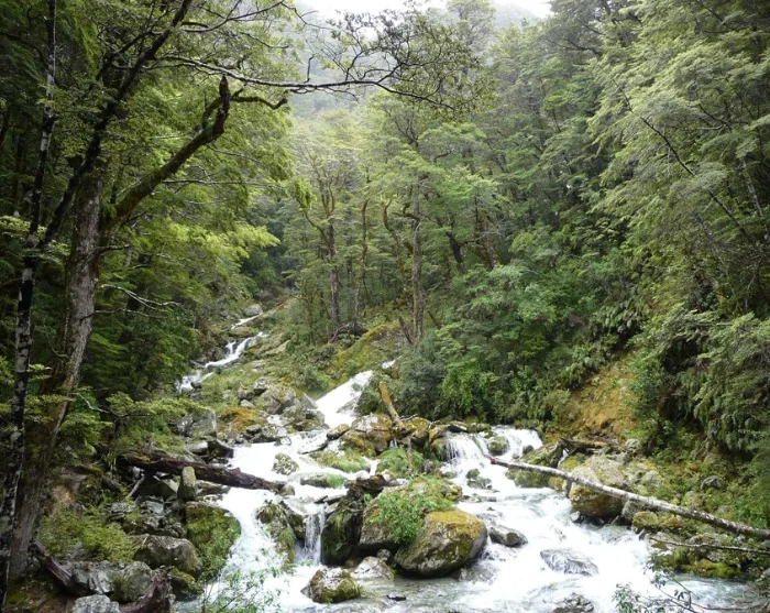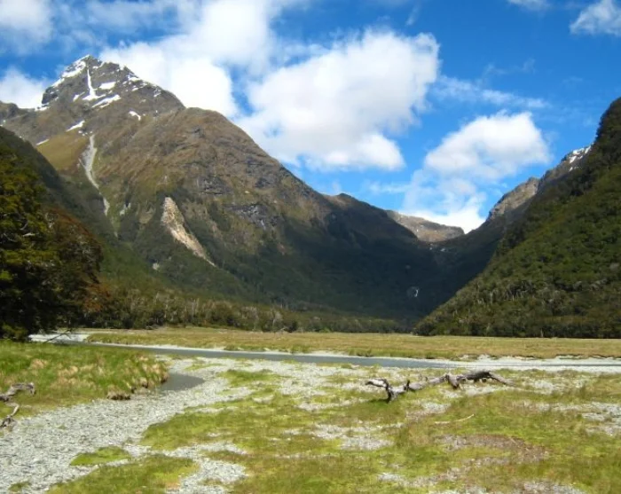 Your hike starts with a crossing over a swinging bridge suspended above the Routeburn River before winding into a spectacular beech forest. The trail is gently undulating and easy underfoot, giving you the perfect chance to look out for birds flitting through the treetops. You might just spot New Zealand’s smallest bird, the rifleman (Acanthisitta chloris), or the rare yellowhead mohua (Mohoua ochrocephala), which is found only in New Zealand.