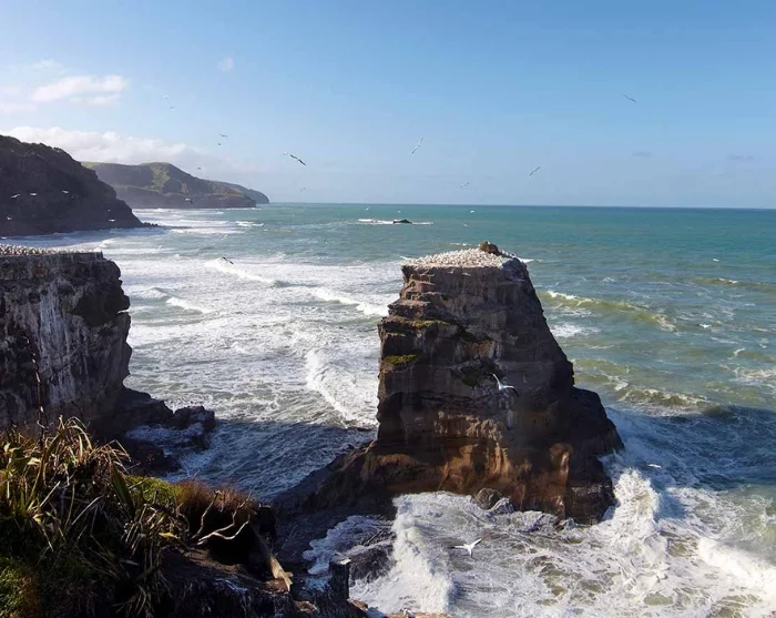 The tour concludes at the Tasman Sea late in the afternoon at Muriwai Beach. During the breeding season (August to March), you will have the opportunity to see Australasian gannets (Morus serrator), one of the world’s largest seabirds, in their natural habitat. You will get close to one of the world’s few mainland colonies of gannets, dramatically perched on the clifftops with views over the Tasman Sea, giving you a unique insight into their behaviour from a distance without disturbing their environment. The view stretches for miles along Muriwai’s wild, black sand beach.