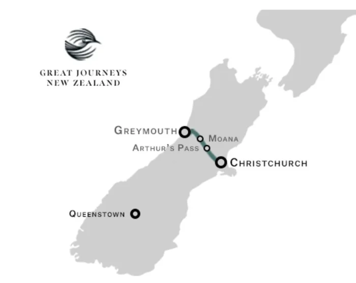 Route: Greymouth – Moana (Lake Brunner) – Arthur’s Pass – Springfield – Christchurch