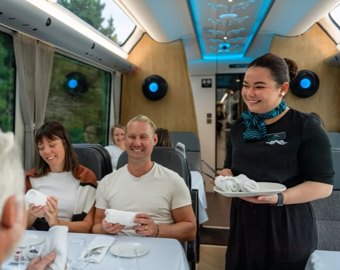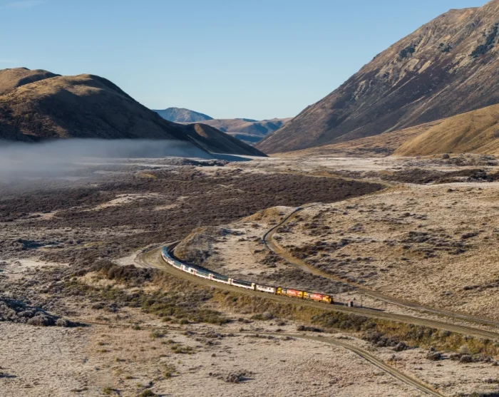 Your adventure begins in Greymouth, where you’ll leave behind the wild beauty of the west coast and venture into the mountains. Along the way, you’ll pass the serene, mirror-like waters of Lake Brunner. Here, the train makes a short stop at the town of Moana. From there, the ascent begins through lush native forest and deep into the heart of the magnificent Southern Alps. Among the highlights is the impressive 8-kilometre-long Otira Tunnel, which runs beneath the Main Divide of the Southern Alps, before you reach Arthur’s Pass, a mountain pass surrounded by snow-capped peaks. In clear weather, take in panoramic views over deep gorges, rivers, and verdant rainforest, all gradually giving way to open highland plains as your train travels eastward.