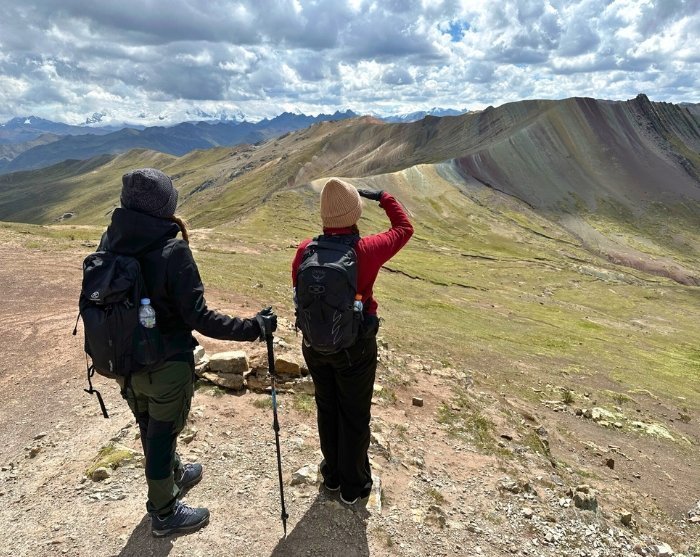 From Cusco, tours are arranged to 2 different sites in the Rainbow Mountains. The most popular spot is Vinicunca Rainbow Mountain, but due to its popularity, this place has so many visitors that it may slightly dampen the experience. It is also a tough hike to the lookout point.