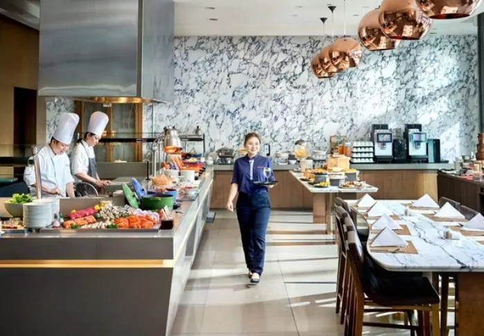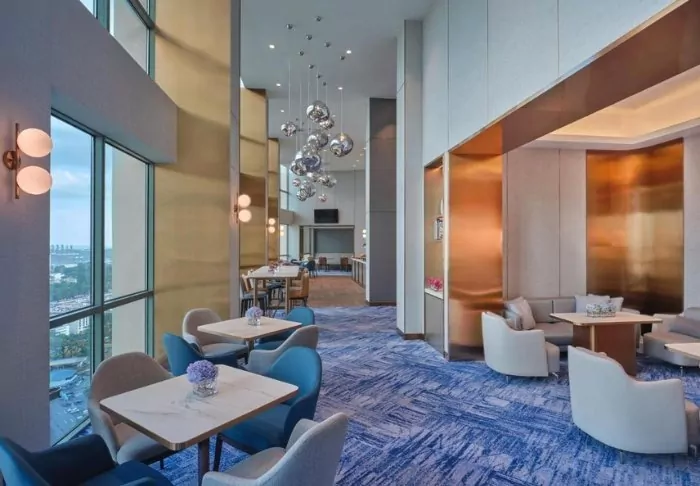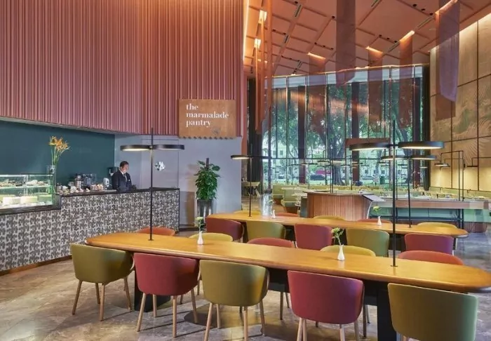 When you start feeling peckish, the hotel also offers excellent dining options. Among its offerings, the hotel’s main restaurant, Plate, boasts a diverse menu with international cuisine and Asian specialities. You can also visit the hotel’s café, Tuxedo, which provides a European coffee bar atmosphere and serves delightful juice, tea, coffee, and baked goods for smaller bites. Take a quick ride up to the 29th floor, and you’ll find the hotel’s elegant rooftop bar, where you can lean back and take in a panoramic view of the Singapore skyline with a colourful drink and a light snack.