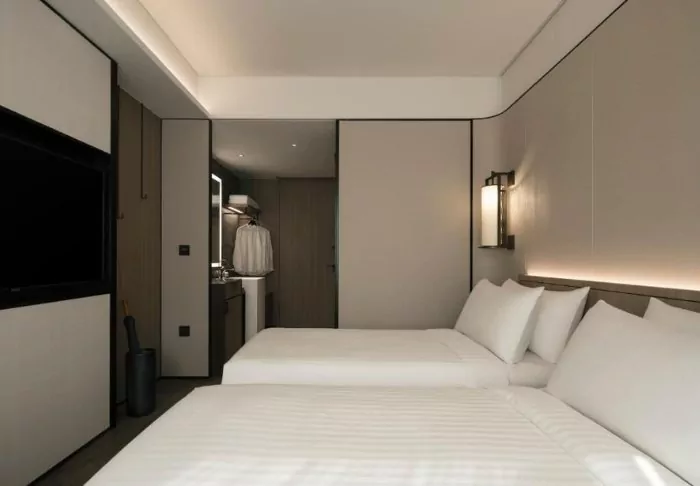 The rooms are modern, decorated in light, natural tones, all have air conditioning, Wi-Fi, a TV, a safe, an iron and ironing board, a minibar, an electric kettle and complimentary tea and coffee. The bathrooms offer a rain shower, toiletries and a hair dryer.