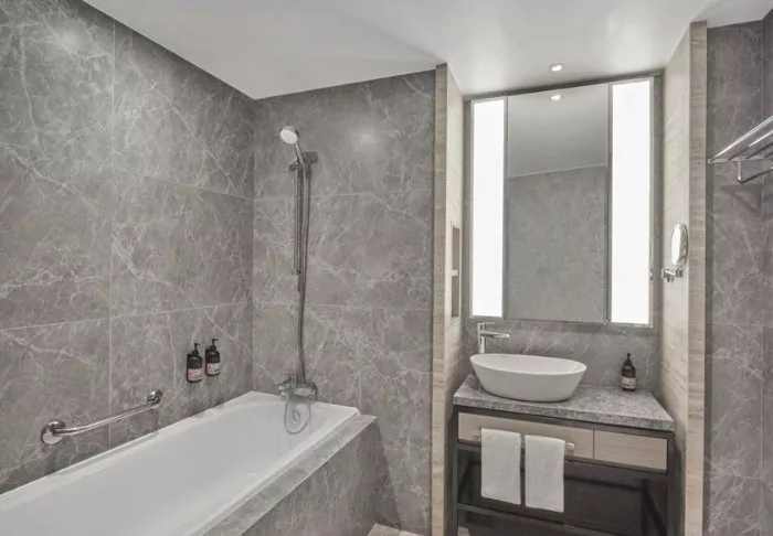 Elegance and comfort combine the hotel’s atmosphere, as well as in its 386 rooms. All rooms feature stylish and comfortable interiors, giving you the opportunity to enjoy Singapore’s impressive skyline. Each room is at least 32 m2, and they all feature every amenity you need for a comfortable stay, e.g., Wi-Fi, air conditioning, a safe, mini-bar, coffee, and tea facilities, as well as an iron and ironing board. The bathrooms are similarly spacious, featuring a shower or bathtub as well as toiletries and a hair dryer.