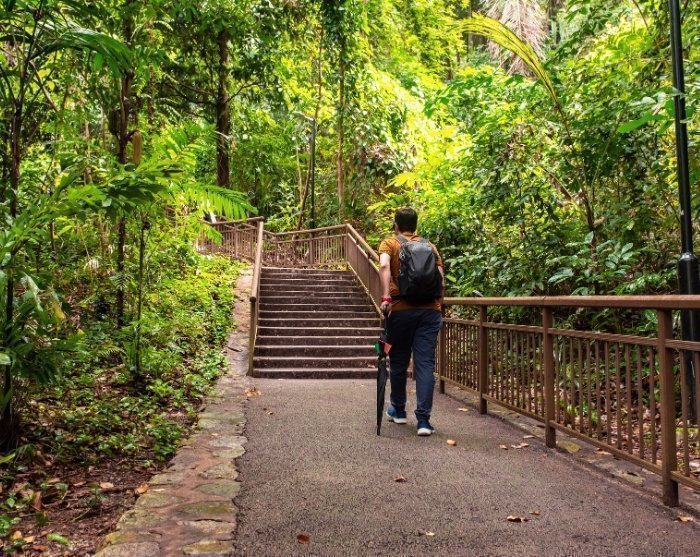 You follow your guide up to the top of Mount Faber, which is reached on foot through lush forest. The route is 3.5 km long, and can be characterised as easy. Along the route, you will cross several modern and impressive walkways, including the Henderson Waves, Southern Ridge and Alexandra Arch, which stand as architectural gems in the otherwise untouched scenery.
