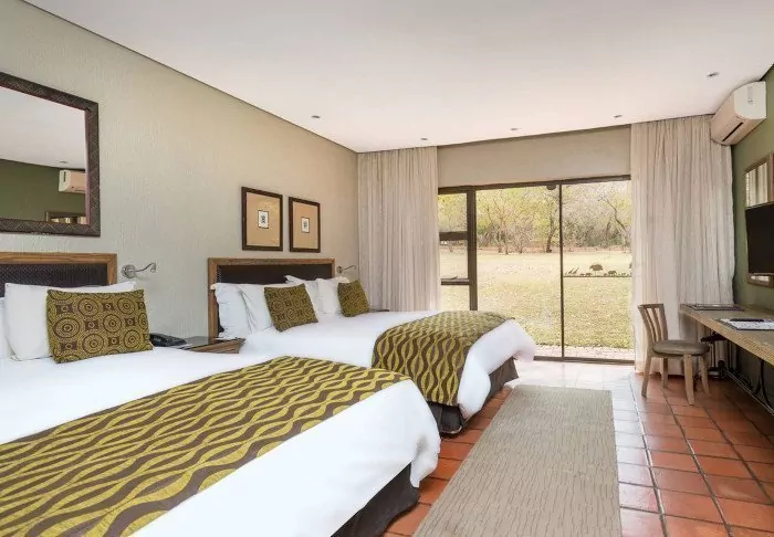 The hotel has 150 rooms spread over three floors. It is decorated in a modern style with warm colours with a touch of Africa. The rooms have air conditioning, a flat-screen TV, a safe, coffee and tea facilities as well as a bathroom with toiletries and a hair dryer.