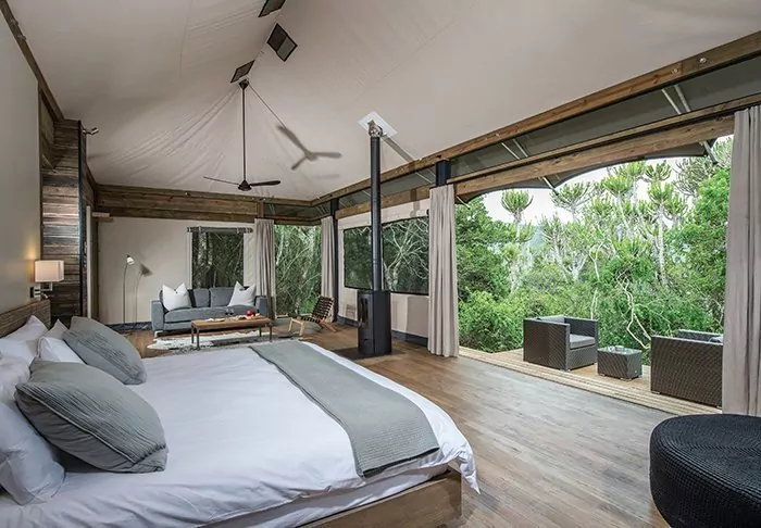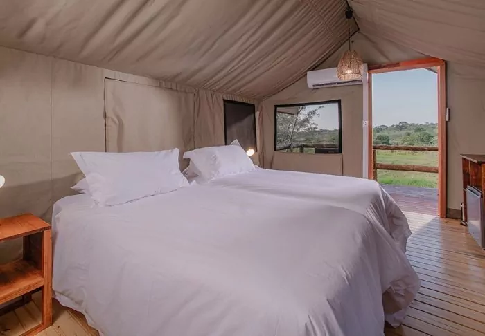 Here, you stay in spacious, beautiful canvas tents that are raised above ground on platforms. The tents feature modern facilities such as wooden flooring, electricity, air conditioning, good toilet and bath facilities, and options for making tea and coffee. Thanks to the canvas walls, you can still hear both hear and smell the wilderness outside. Here, you can stay in tents with double beds, as well as tents that are especially suited for families. Each tent has its own veranda.
