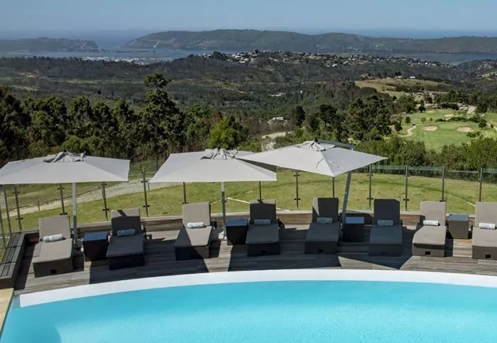 The 5-star Simola Hotel Country Club is probably the hotel in Knysna with the best view. The hotel is located high in the hills a little outside the town centre, and from the hotel restaurant, you have the most amazing view of the lagoon and the surrounding countryside. Next to the hotel is one of the country’s best golf courses, and the surroundings are ideal for walks or runs along the numerous trails around the hotel.