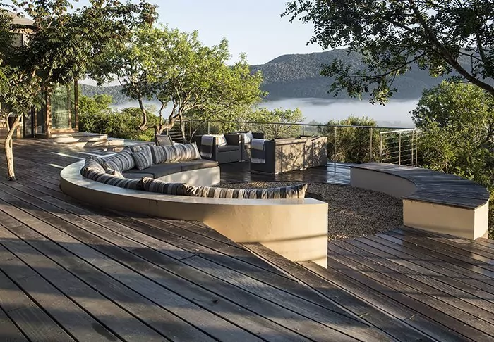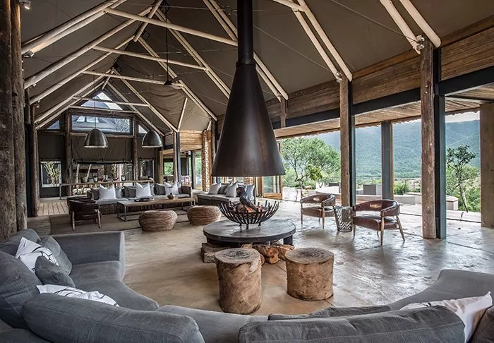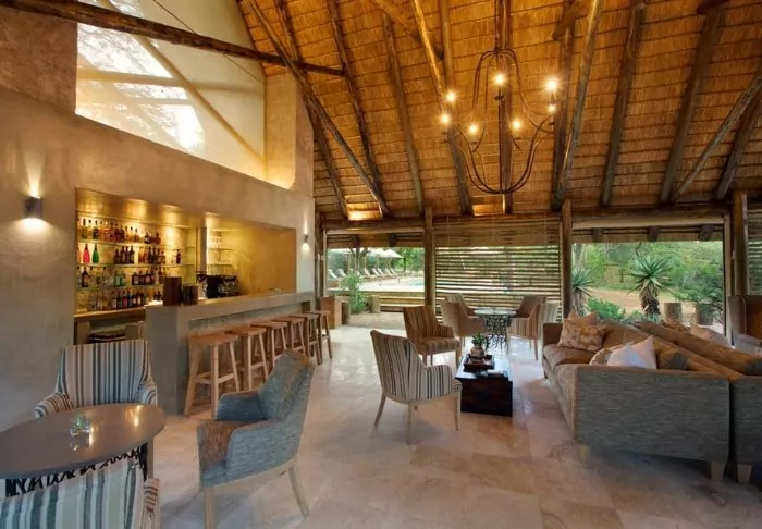 Located by one of the pools, the cosy lounge area offers a view of the Kruger National Park on the other side of the Sabie River. In the very early morning and at the end of the day, the light here is incredible, and if you’re lucky, perhaps a pride of elephants will come by to bathe in the river.