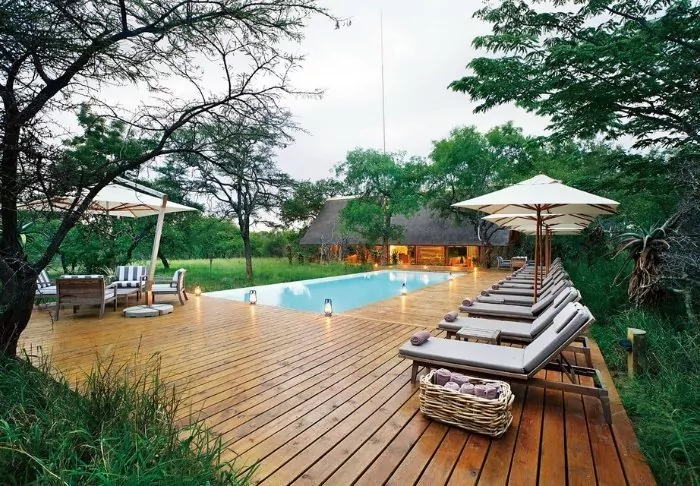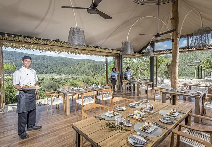 There are just 15 suites and 10 villas here, all of which are luxuriously and stylishly appointed in muted natural colours, so that the décor does not detract from or disturb the nature that is right outside the large windows. All suites have their own terrace, from which you can enjoy the view of the bush. Naturally, there is also air conditioning, a minibar and tea and coffee making facilities.