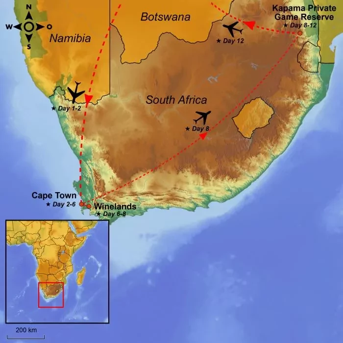 Treat all your senses in South Africa. Enjoy beautiful Cape Town, taste exquisite wines in the Winelands, and conclude your trip with the all-inclusive luxury safari at Kapama Private Game Reserve.