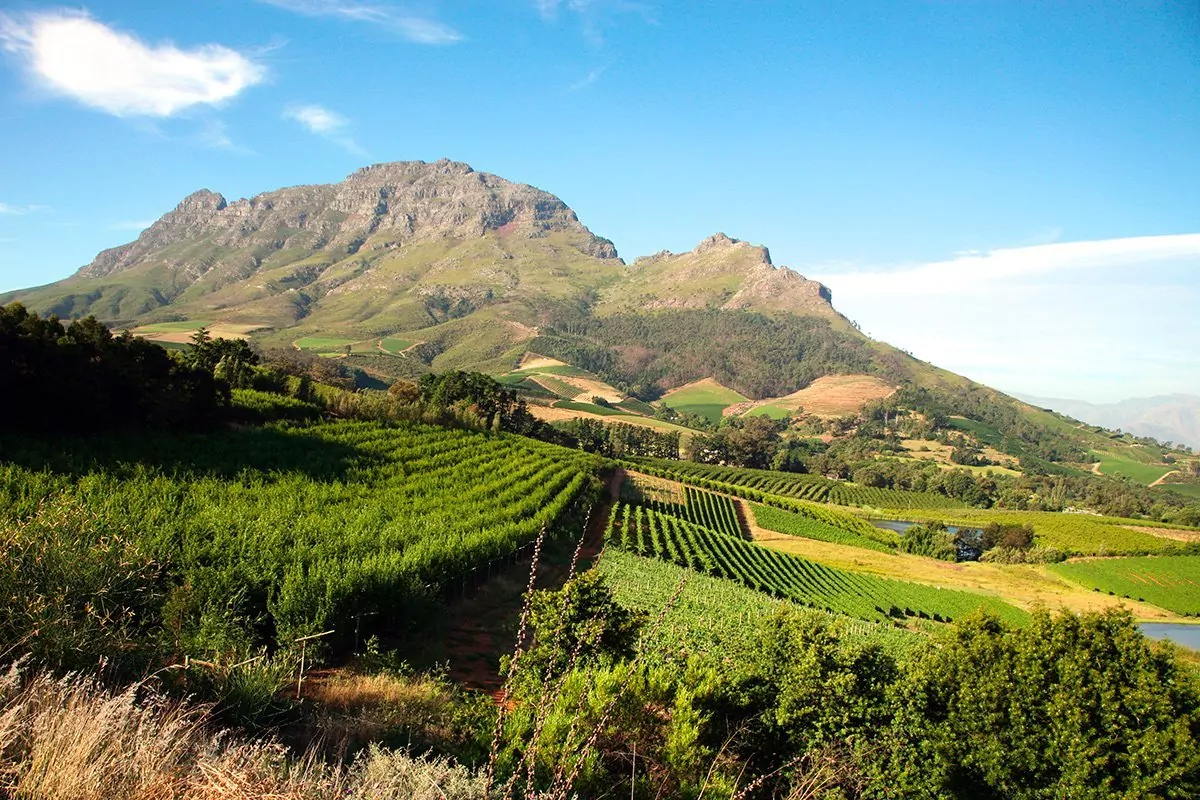 The valleys surrounding Cape Town are ideal for growing wine grapes. The mountains provide both water and shelter from the wind, the soil is well-drained and the climate is approximately like the Mediterranean.