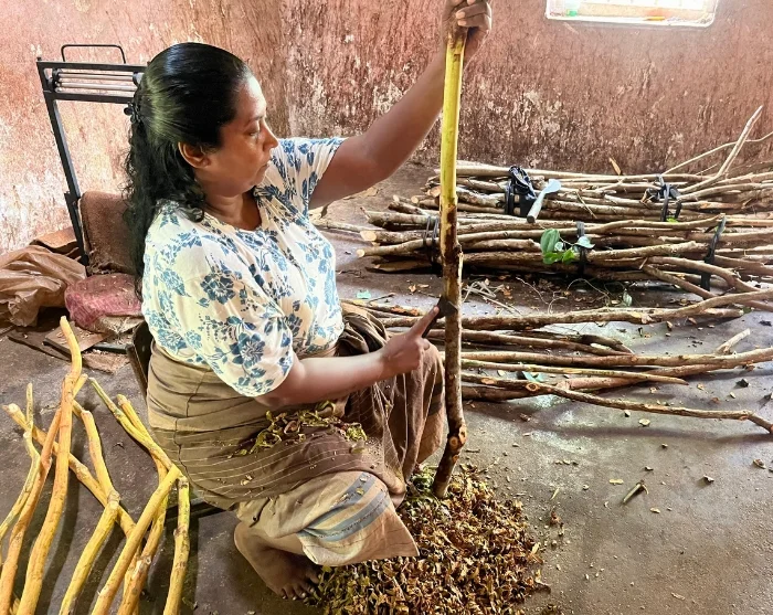 On the way, you’ll stop in the village of Ahangama for a fun and lively tuk-tuk ride through the lush surroundings. Here, you’ll visit local families who work with two of the area’s oldest crafts: cinnamon production and weaving beautiful household items from sugar cane. You’ll get to see how fragrant cinnamon branches are transformed into the familiar sticks we all recognise, while sugar cane is woven into lovely, practical objects. The visit finishes with a steaming cup of tea and a taste of local sweet treats, enjoyed overlooking the beautiful Koggala lagoon.