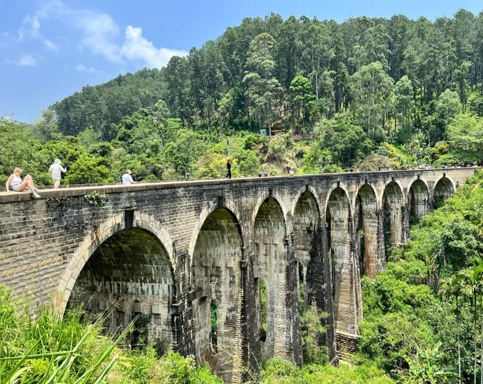 On your way there, you’ll wander along narrow paths surrounded by banana palms and tea bushes, perhaps exchanging greetings with children who grow up amidst the region’s countless tea plantations. At the end of your walk awaits the Nine Arch Railway Bridge – standing at almost 30 metres tall, this architectural masterpiece rises majestically from the lush landscape.