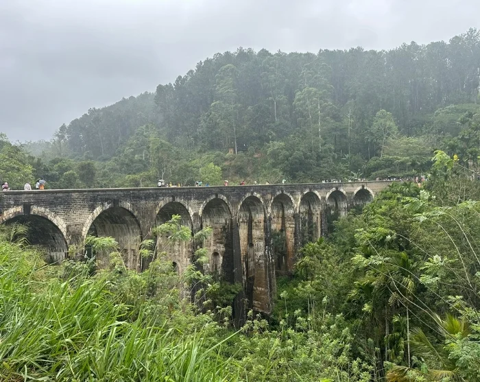 The descent follows the same path through lush surroundings before you set off by car toward what is perhaps Sri Lanka’s most photographed landmark: the beautiful Nine Arch Bridge, constructed during British colonial times without iron or steel.
