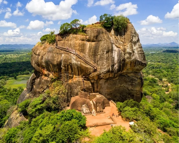 An unforgettable experience awaits you at the flat summit of the rock. From here, you’ll be captivated by the breathtaking view over the ruins of the ancient royal palace, complete with its moats, water features, and lush gardens. On the horizon, a green sea of jungle, mountains, and villages unfolds, and in the distance, you can catch a glimpse of Pidurangala Rock.