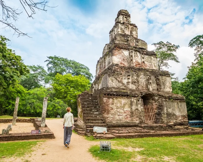 Along the way, you’ll encounter many dome-shaped stupas such as Rankot Vihara, Kiri Vihara Dagoba, and Pabalu Vehera, scattered across the landscape, while the unusual Satmahal Prasada bears a striking resemblance to a Mayan pyramid. You’ll also see the ancient irrigation system, a living testament to King Parakramabahu’s vision that not a single drop of rain should go to waste. This vast system, with its colossal reservoirs and networks of interlinking canals leading to Polonnaruwa, still fascinates visitors today.