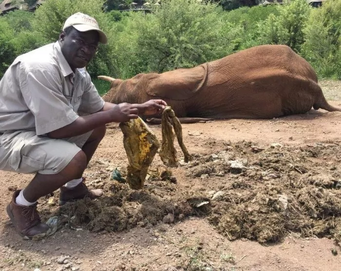 During the autopsy of the elephant, vast amounts of plastic were found in its stomach, making it clear that the aggressive behaviour of the two elephants was caused by its pain. Local forces united to remove all plastic from the area to prevent similar incidents. Ele-Collection became a reality.