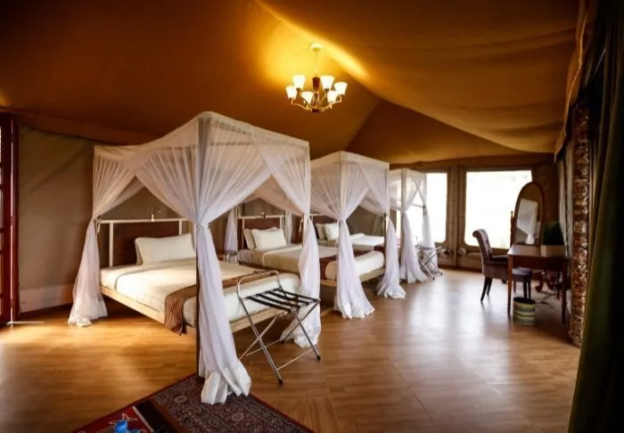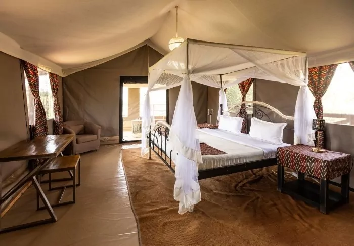 The camp is a classic African safari camp, where nature takes the centre stage. The wild animals often visit the camp at night, and you can expect to see gazelles, antelopes, zebras, and occasionally elephants and hyenas, around the camp.