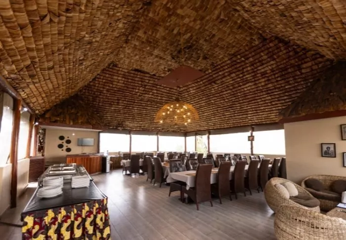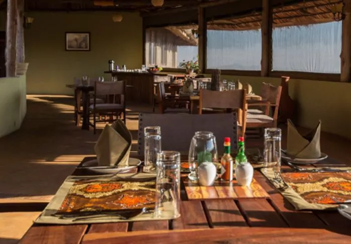 The restaurant affords a scenic view of the area, which is on the migration route. The area is also home to large herds of different antelope species, buffaloes and elephants as well as flocks of flamingos and other birds.