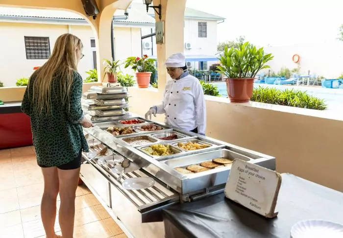 The hotel provides high standards of service with a modern swimming pool, beautiful gardens bars indoors and outdoors and spacious rooms with showers and mosquito nets.