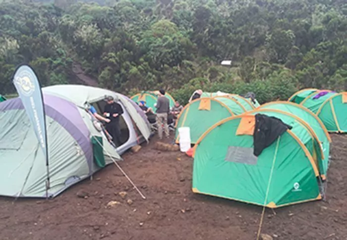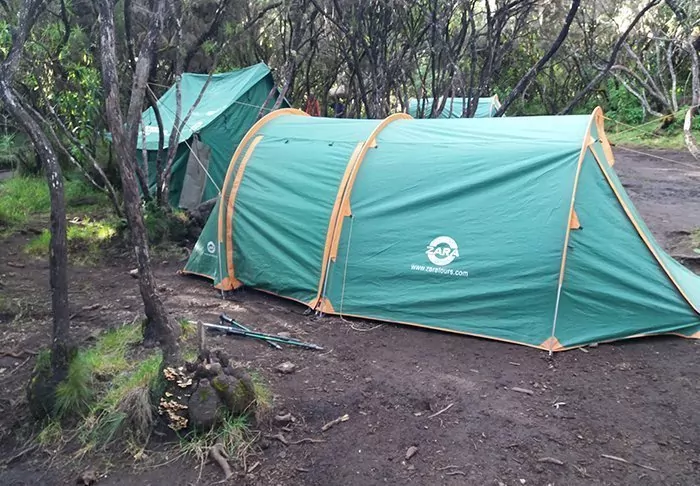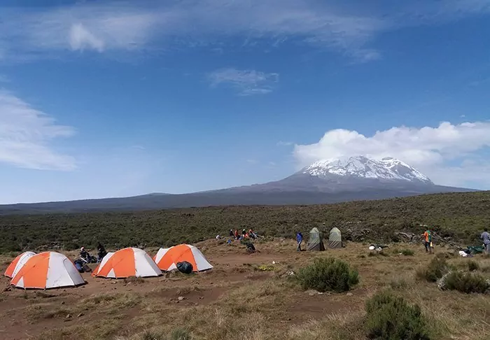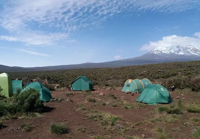 During the hiking trip to the summit of Kilimanjaro you sleep in a tent in different camps.