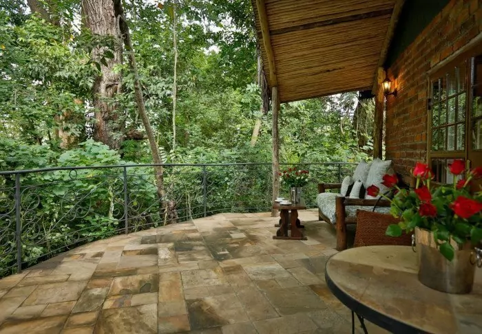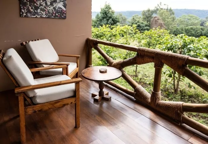 It has 41 rooms and a veranda overlooking a lush valley with coffee plantations, which the elephants love to ravage. The hotel also has its own coffee plantation, and the coffee can be enjoyed at the hotel and purchased to take home with you. An organic fruit and vegetable garden are also part of the hotel.