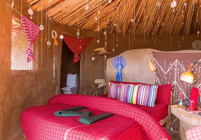 There are 11 huts, all built in traditional Masai style – though with the exception that they have every conceivable convenience such as electricity, a toilet, running water and a hot shower.