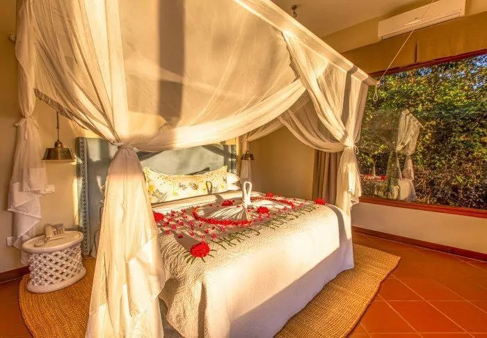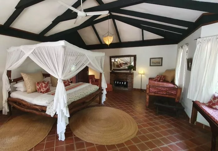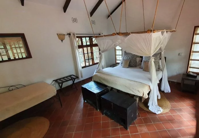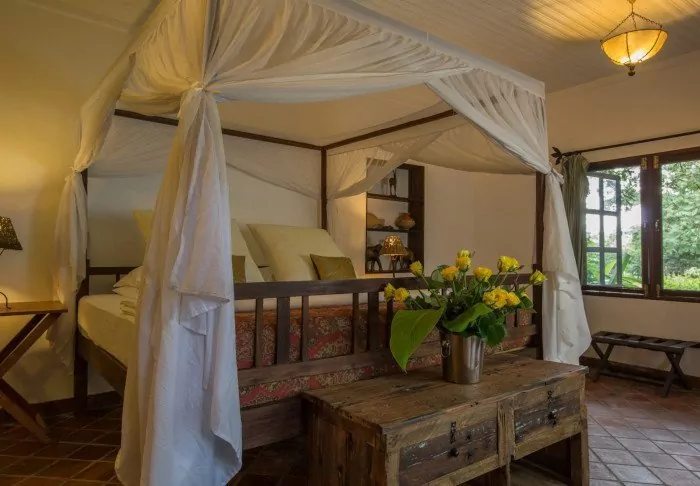 This is a small, exclusive lodge with just 24 cabins in charming colonial style and 12 rooms in the main building with a terrace or balcony, all facing out onto the garden. All rooms have a bathroom with a shower and also offer a fan, a tea/coffee tray and a mosquito net as well as the possibility of room service.