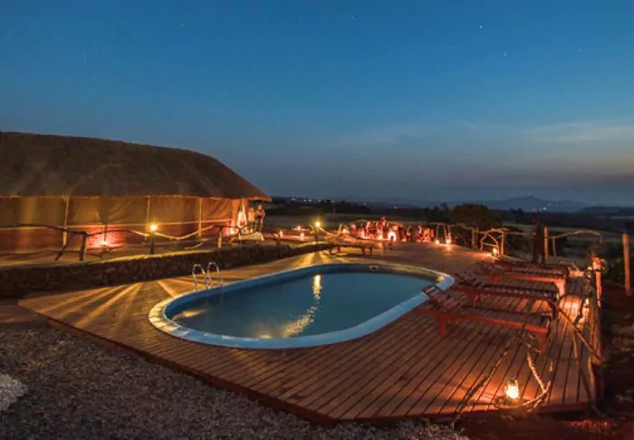 Enjoy a cool dip in the small pool after the safari – and a drink around the campfire in the evening. Look forward to dinner: the food comes from the fields around the lodge, and it goes without saying that the coffee is local!