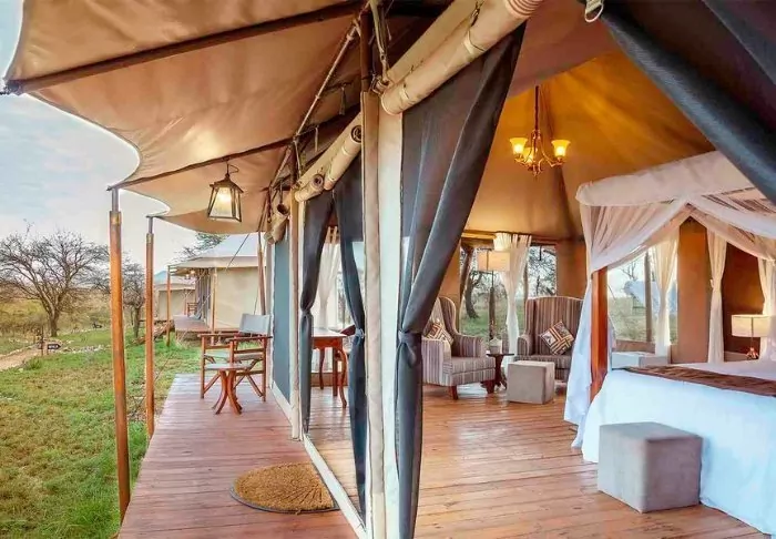 Dream of polished floors, bathtubs on lion paw feet and elegant furniture in a luxury tent in the heart of the Serengeti? Then you should choose to upgrade to Matawi Serengeti Camp.