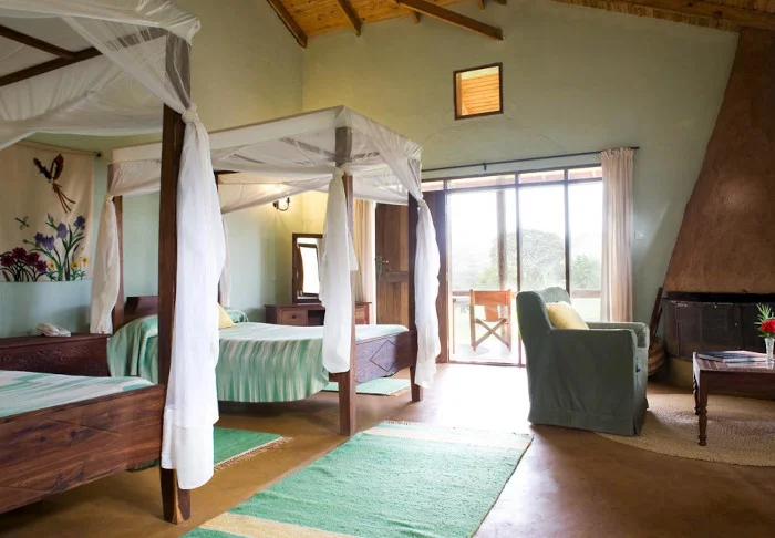 Situated on a peaceful hilltop, close to the bustling centre of Karatu is the charming, Acacia Farm Lodge. As the name suggests, it is a working coffee farm with 32 rooms spread between 16 “cabins”. All rooms have their own large veranda or terrace, and all have air conditioning, a minibar, tea and coffee-making facilities, a TV, a safe and Wi-Fi. The rooms are large in size, modernly appointed with a touch of romance and have large windows which allow the light to flood in.
