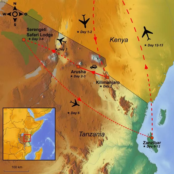 Today is departure day, where you will fly to Tanzania with connecting flights along the way.