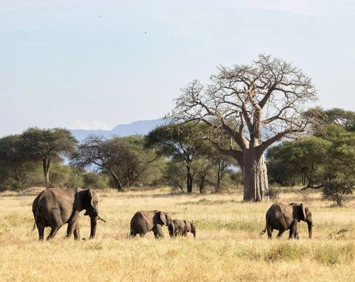 The day offers a safari in Tarangire National Park. As you are spending the night right outside the park, you have the whole day to go on safari here. And, among the attractions, you can look forward to experiencing elephants in abundance! The park is home to the largest number of elephants in all of Northern Tanzania. There are several reasons why elephants like to be here. One of the reasons is that they can always find water in Tarangire. Even during the driest period of the year, when the river is almost dried out, the elephants know where to dig for water.