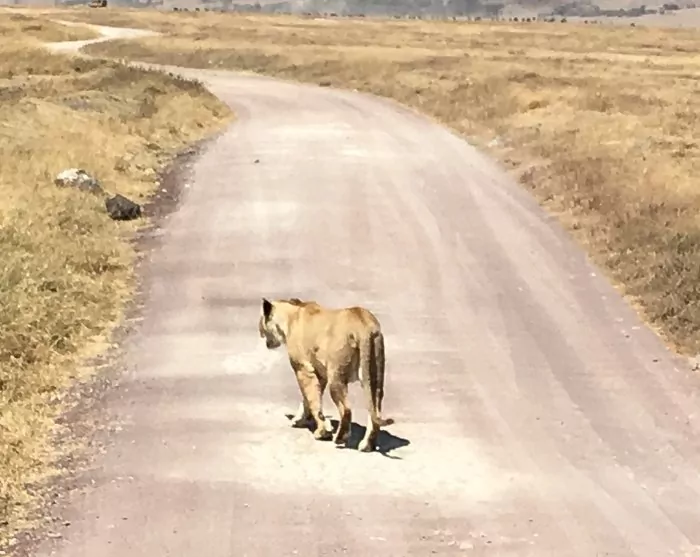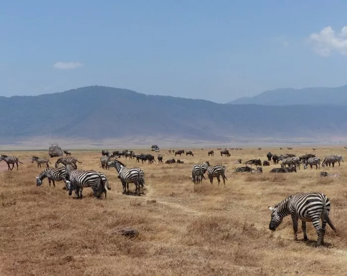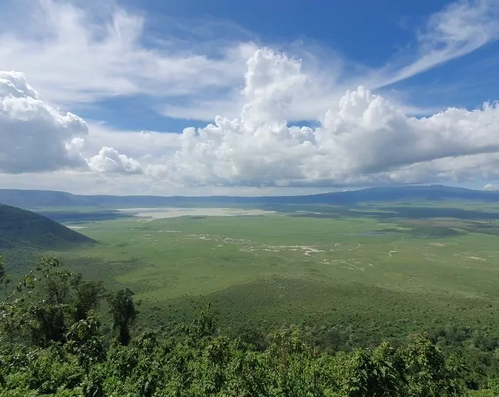 From Serengeti, the tour heads to the Ngorongoro Crater. You travel there by car, so it’s almost like one long game drive all day.