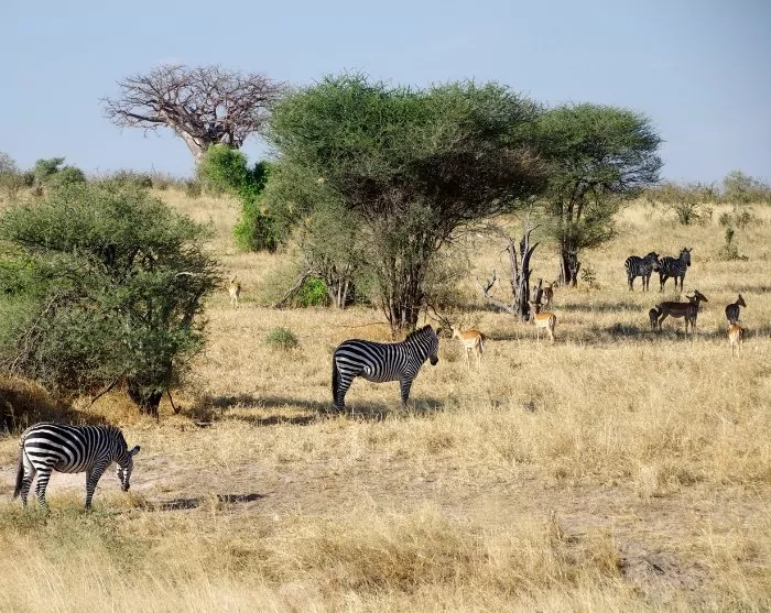 On arrival at the local airstrip, you will again be met by a guide who will drive you to your lodge, where you will stay for the next three nights. You will probably notice that the air is drier here than in Nyerere, and the heat will probably feel more comfortable. With a little luck, you will spot the first animals on the drive to the lodge, but many animals seek shade in the middle of the day, when the sun is highest in the sky.