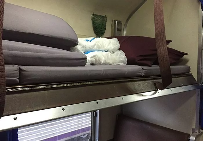 The train carriages themselves are clean and comfortable. A couchette consists of a number of screened off compartments – so not a cabin as such. When you want to sleep, the conductor comes along and changes your seat to a bed and pulls a curtain around you for privacy. All beds are made up with sheets, pillowcases and a sealed blanket in clean, freshly washed cotton. There is luggage storage in your couchette.