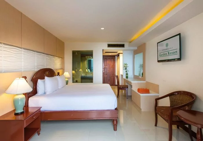 The Imperial has 104 spacious rooms with views of the natural surroundings. The rooms are furnished with dark wood furniture and traditional Thai elements, and they are fitted with everything you need, including air conditioning, minibar, flat-screen TV and electric kettle, so that you can start the day out on your private balcony with a cup of tea or coffee while enjoying the peaceful atmosphere. The bathrooms are fitted with a shower, toiletries and hairdryer.