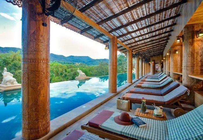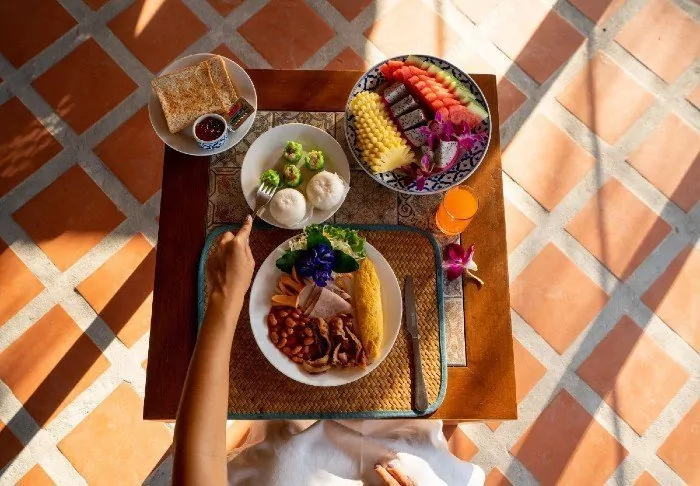 After a day filled with experiences, you can enjoy a dip in the hotel’s infinity pool, which is beautifully decorated with locally made tiles. You can also just hang on to the poolside and admire the breathtaking views of green fields and the Mae Yen Mountain. There are even sun loungers, so that you can easily rest and relax under the rays of the sun.