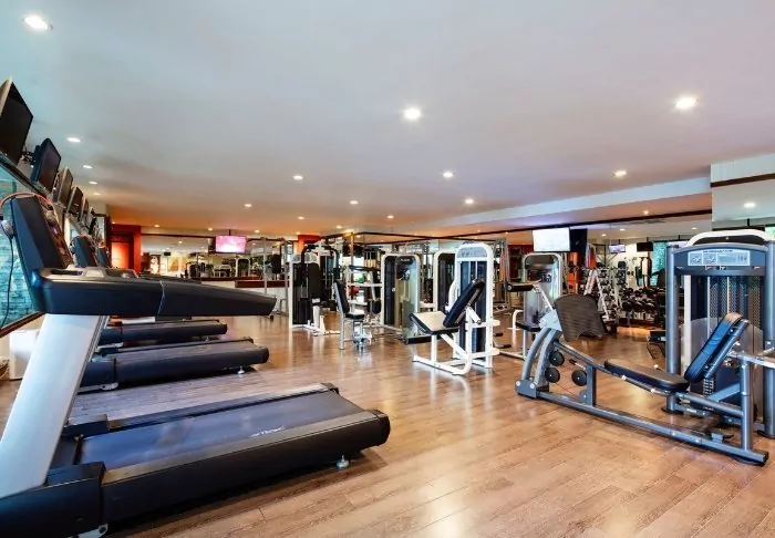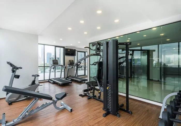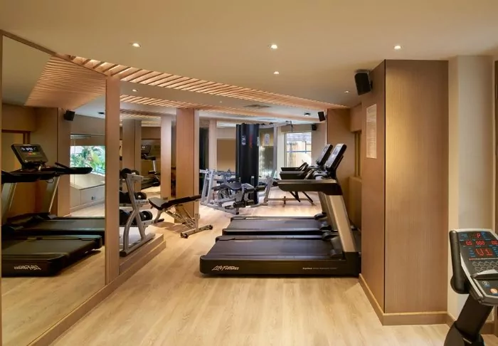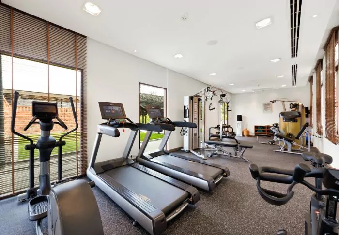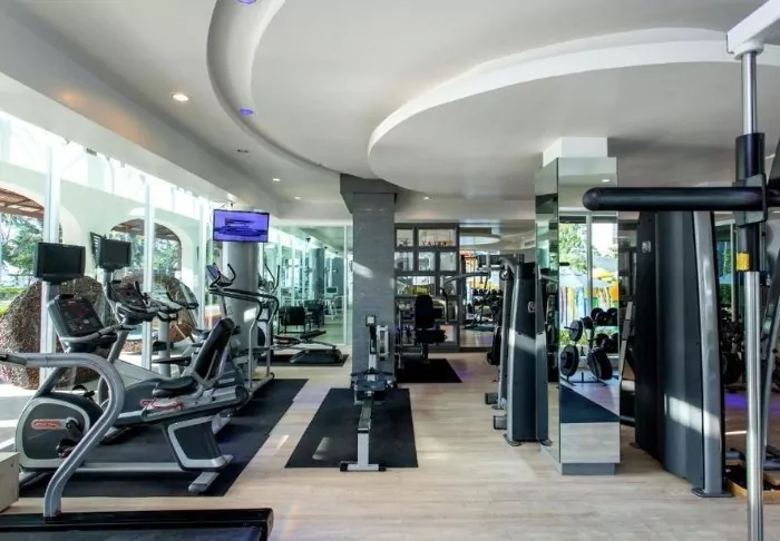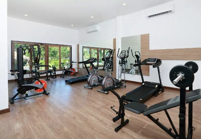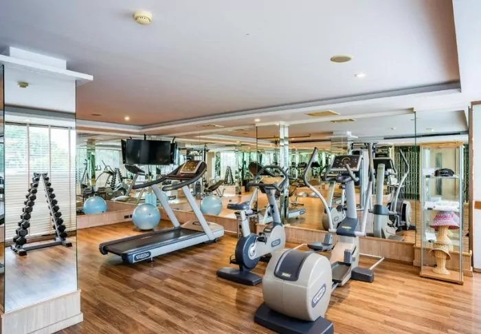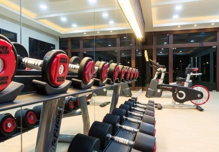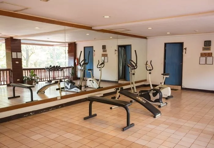 Other facilities include a gym equipped with both weights and various machines.