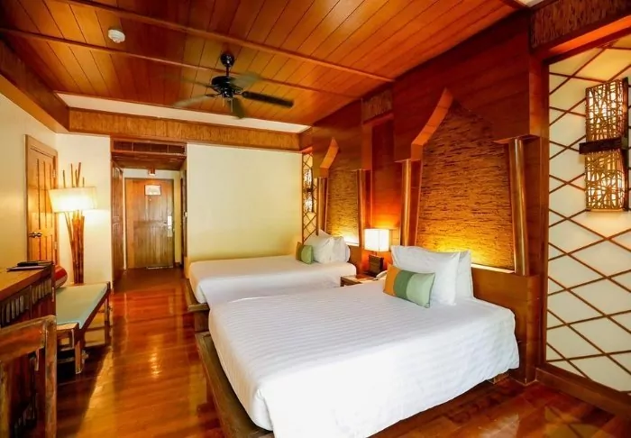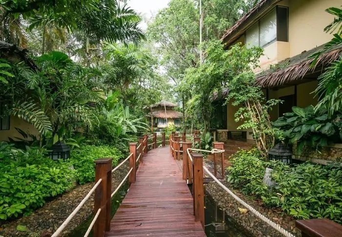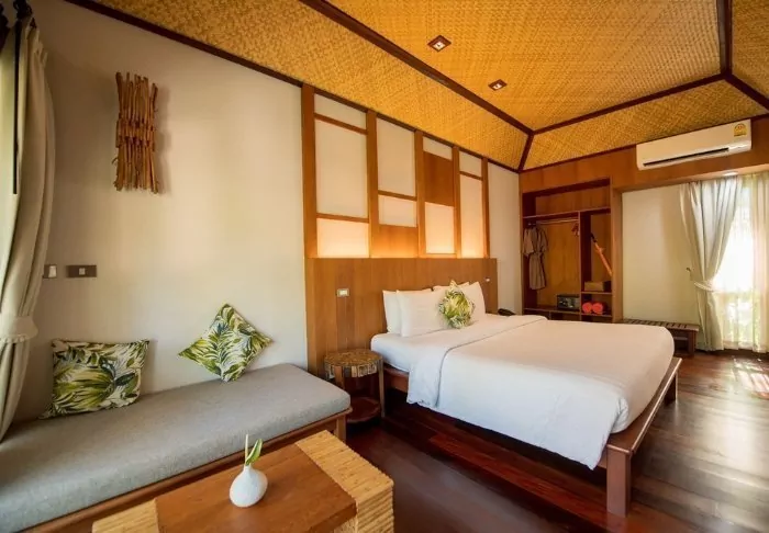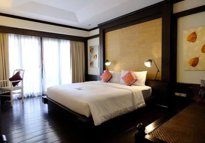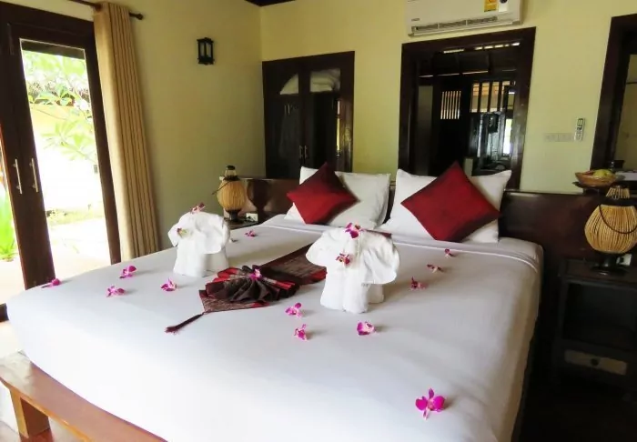 Built like a traditional village, the resort oozes cosiness. The 62 rooms are decorated in classic Thai style with dark teak furniture and colourful walls and fabrics. All rooms have Wi-Fi, air conditioning, a minibar, bottled mineral water, coffee/tea making facilities, a TV, a telephone and a parasol. The bathroom has a hair dryer and toiletries. From the balcony, you can enjoy the view of either the garden or the canal.