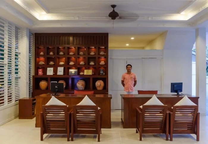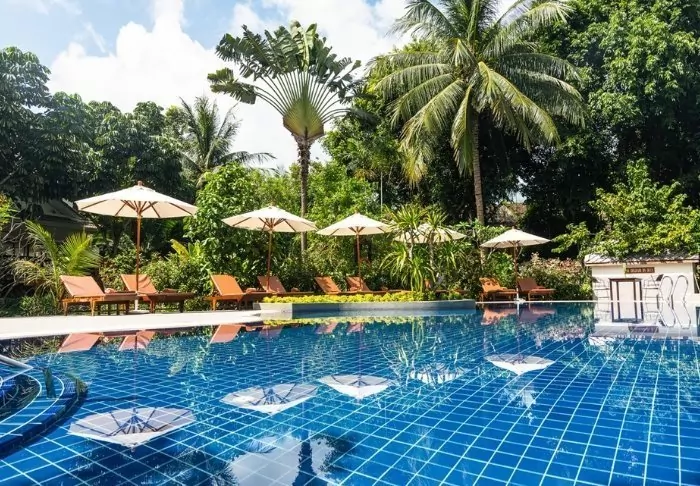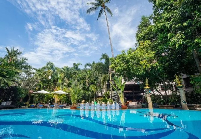 The resort also provides a range of facilities to ensure a complete holiday experience. After a day of exploring, you can take a dip in the large outdoor swimming pool, which is surrounded by tropical trees and plants, and if you want to keep fit during your tour, the resort also has a small fitness room.